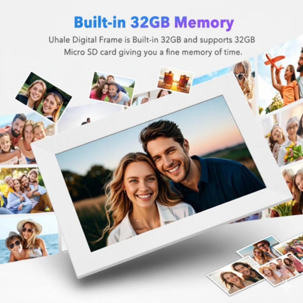 Der Rahmen verfügt über 32 GB internen Speicherplatz, genug für Tausende von Fotos. Sie brauchen mehr Platz? Setzen Sie eine Micro-SD-Karte ein, um zusätzlichen Speicherplatz zu erhalten und Ihre Dateien einfach zu verwalten.