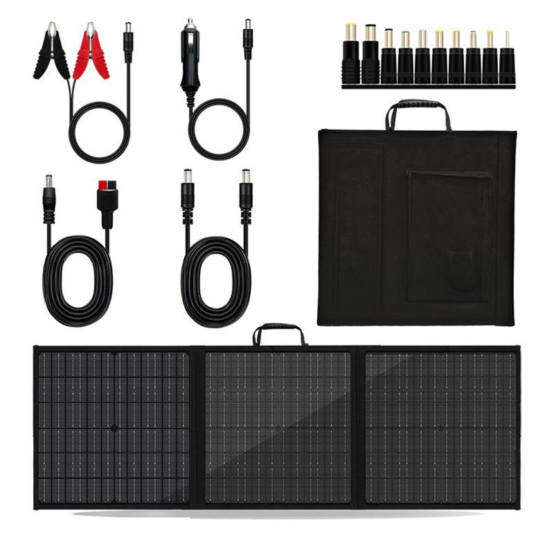 100W tragbares 3-fach-Solarpanel und Ladegerät für Camping und Wandern - IP65 - Schwarz