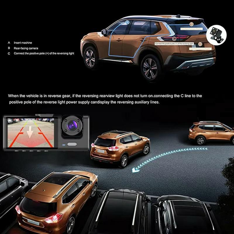 • 1080P WiFi-Autokamera mit drei Objektiven - Front-/Innen-/Rückfahrkamera-DVR mit Parkmonitor, G-Sensor und Nachtsichtfunktion