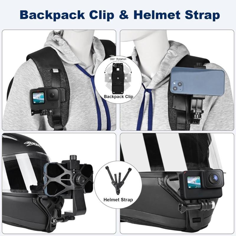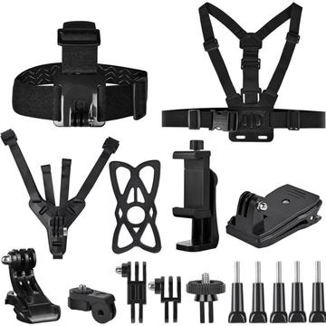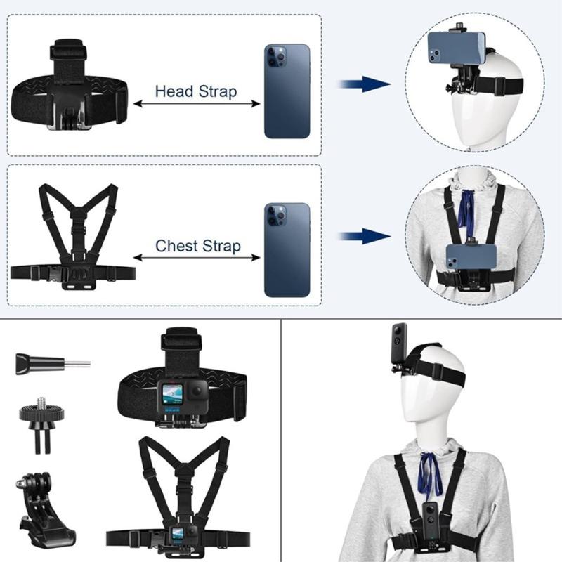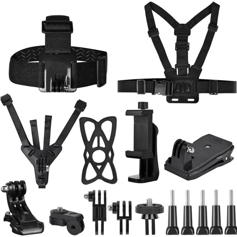 • 11-in-1-Zubehörset für GoPro-Actionkameras - Kopfband, Brustgurt, Kinnhalterung, Rucksackclip und Handyhalterungsset
