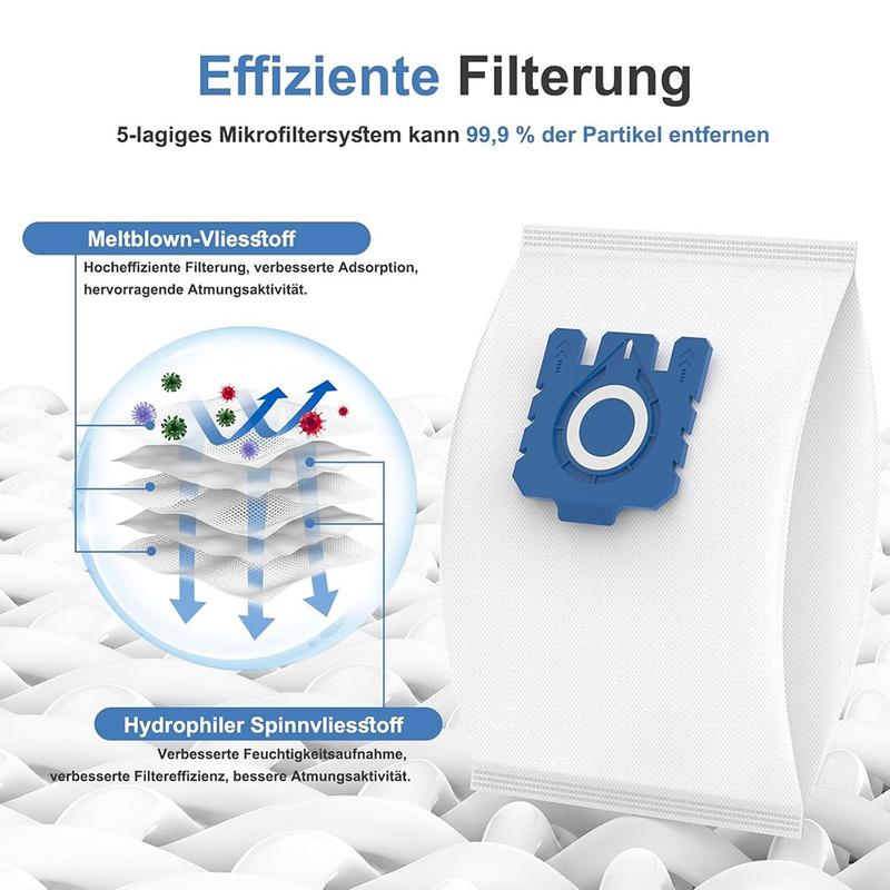 - 100 % Mikrovlies, fünflagige Konstruktion für hervorragende Staub- und Allergenrückhaltung