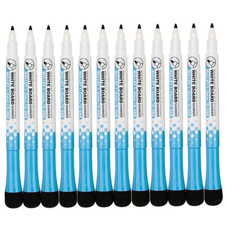 12er-Pack Whiteboard-Marker mit Radiergummi - Blau