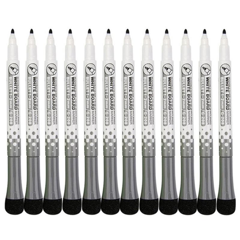 12er-Pack Whiteboard-Marker mit Radiergummi - Schwarz