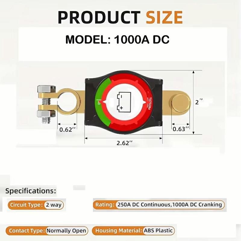 Ob Sie eine einfachere Batteriewartung, zusätzlichen Schutz während der Lagerung oder eine bequemere Lösung zum Abschalten der Stromversorgung wünschen - dieser Batterietrennschalter mit obenliegendem Anschluss ist eine nützliche Ergänzung für Ihre Anlage. Sein kompaktes Design, seine hohe Strombelastbarkeit und seine einfache Bedienung machen ihn zu einer zuverlässigen Wahl für eine Vielzahl von 12-V- und 24-V-Anwendungen.