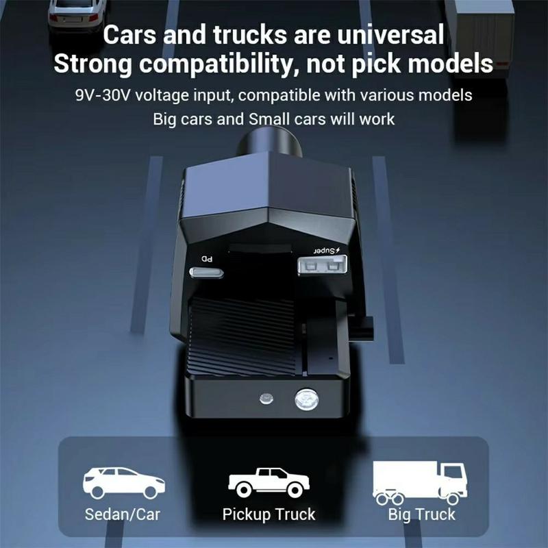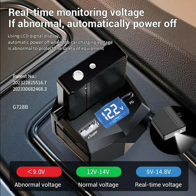 Dieses multifunktionale Gerät bietet die Möglichkeit, Ihre Geräte sowohl im Fahrzeug als auch unterwegs aufzuladen. Seine Schnellladefunktion sorgt für minimale Ausfallzeiten Ihrer Geräte, während die eingebaute Taschenlampe in unvorhergesehenen Situationen zusätzlichen Nutzen bietet. Die digitale Anzeige informiert in Echtzeit über die Batteriespannung Ihres Fahrzeugs und trägt so zur proaktiven Fahrzeugwartung bei.