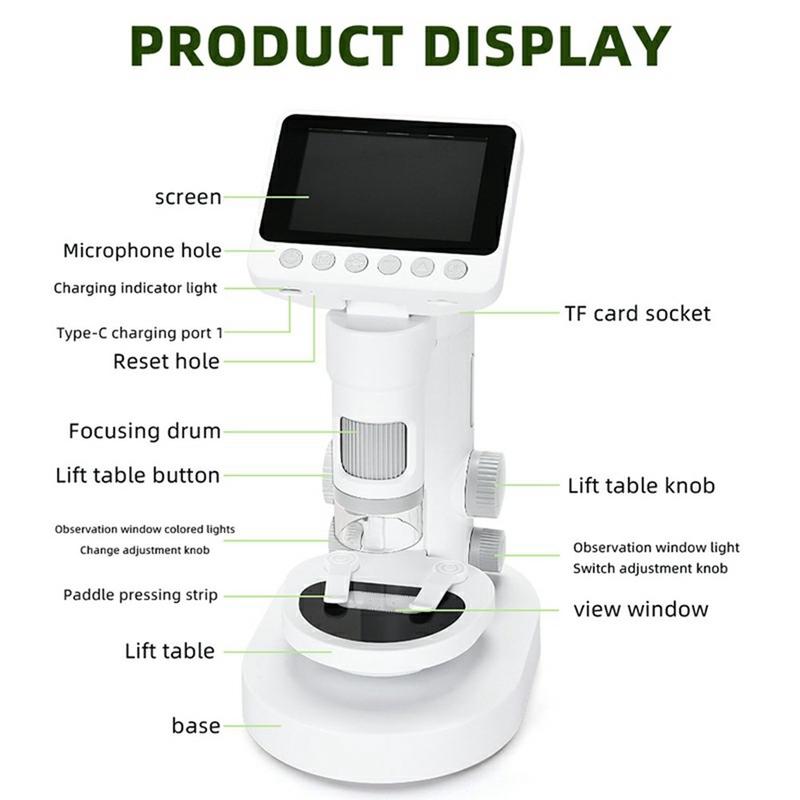 • Digitales Kindermikroskop 1000X / 2-in-1 Hand- und Tischmikroskop mit 3,5-Zoll-HD-Bildschirm und Objektträger-Set