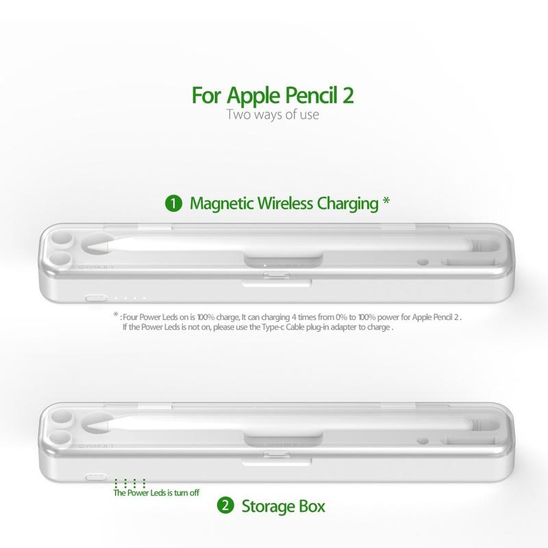 2-in-1 tragbares kabelloses Ladegerät für Apple Pencil (2. Generation) / (1. Generation) Kabellose / kabelgebundene Ladebox mit integrierter Batterie