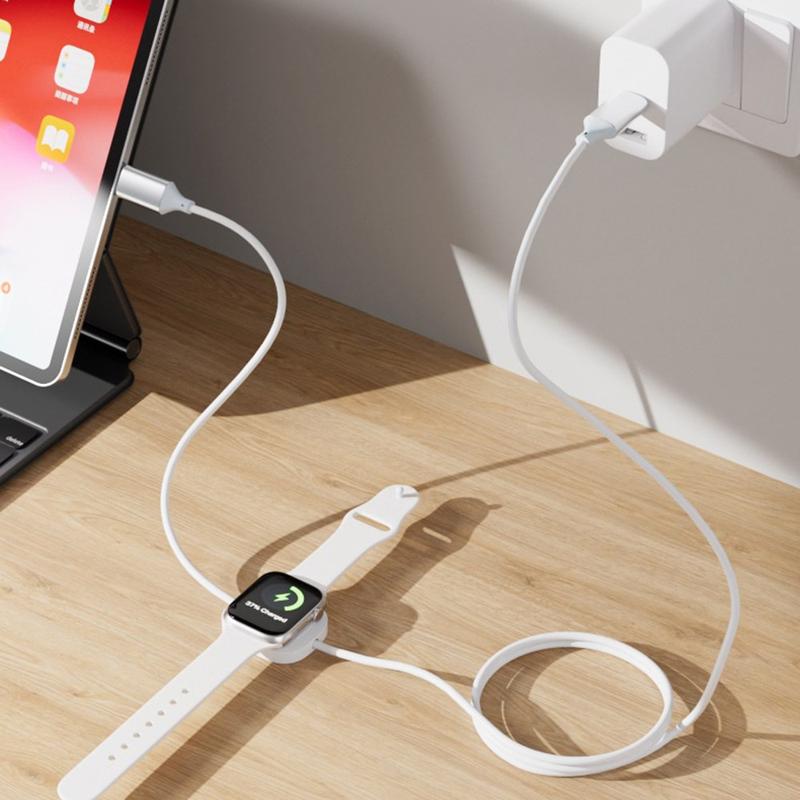 Dieses 1.2m lange 2-in-1 Typ-C-Schnellladekabel kombiniert eine leistungsstarke 100-W-PD-Ladung mit einem magnetischen kabellosen Ladegerät für die Apple Watch und bietet damit eine bequeme Hochgeschwindigkeitslösung für Smartphone- und Smartwatch-Nutzer. Mit einem Kern aus reinem Kupfer für eine stabile Leistungsabgabe und einen verbesserten Batterieschutz sorgt es jedes Mal für effizientes und zuverlässiges Laden. Die starke Magnetbefestigung garantiert eine sichere Platzierung und perfekte Ausrichtung und macht das Aufladen mühelos. Durch die Unterstützung der Schnellladeprotokolle PD, QC und FCP ist dieses vielseitige Kabel mit einer Vielzahl von Geräten verschiedener Marken kompatibel. Kompakt, langlebig und reisefreundlich ist es das ideale All-in-One-Ladewerkzeug für zu Hause, im Büro oder für unterwegs.
