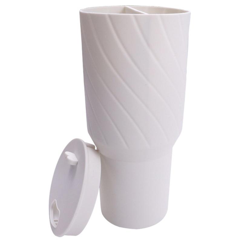 - Dual-Drink-Design: Der 2-Fach-Behälter hält zwei Getränke in einem Becher getrennt voneinander.