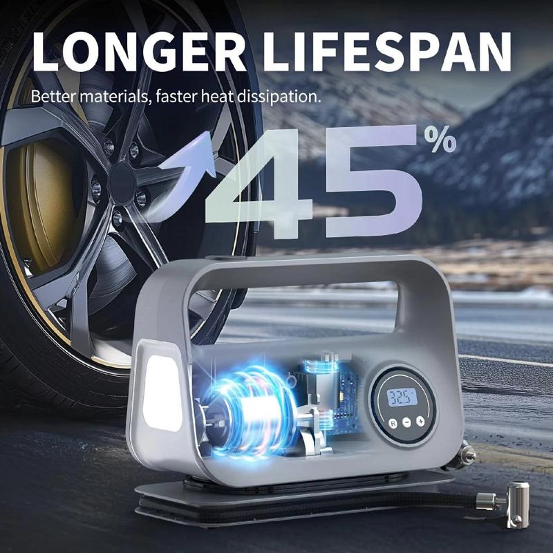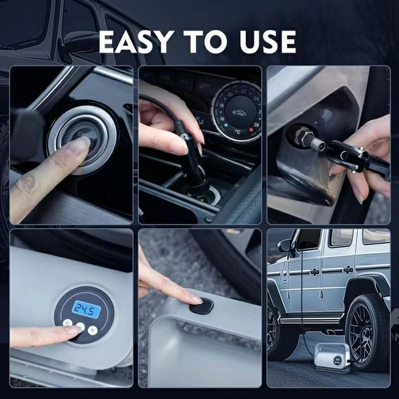 Mit der 22-Zylinder-Autoluftpumpe mit Digitalanzeige sind Sie für jede Reise gerüstet. Dieser leistungsstarke und dennoch tragbare Kompressor wurde für ein schnelles, präzises und problemloses Aufpumpen entwickelt, egal ob Sie Autoreifen auffüllen, Sportgeräte aufpumpen oder Notfälle am Straßenrand bewältigen müssen. Sein kompaktes Design, die automatische Abschaltfunktion und die integrierte Digitalanzeige machen ihn zu einem zuverlässigen Begleiter für Fahrer, die Wert auf Effizienz und Sicherheit legen.