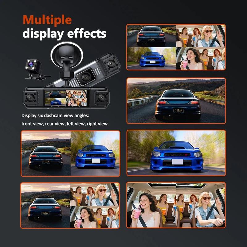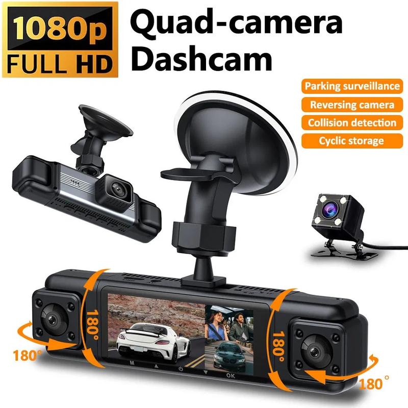 3.0" IPS 1080P 4-Linsen Dash Cam mit Front-, Heck- & Seitenaufzeichnung - Weitwinkel Fahrzeug DVR