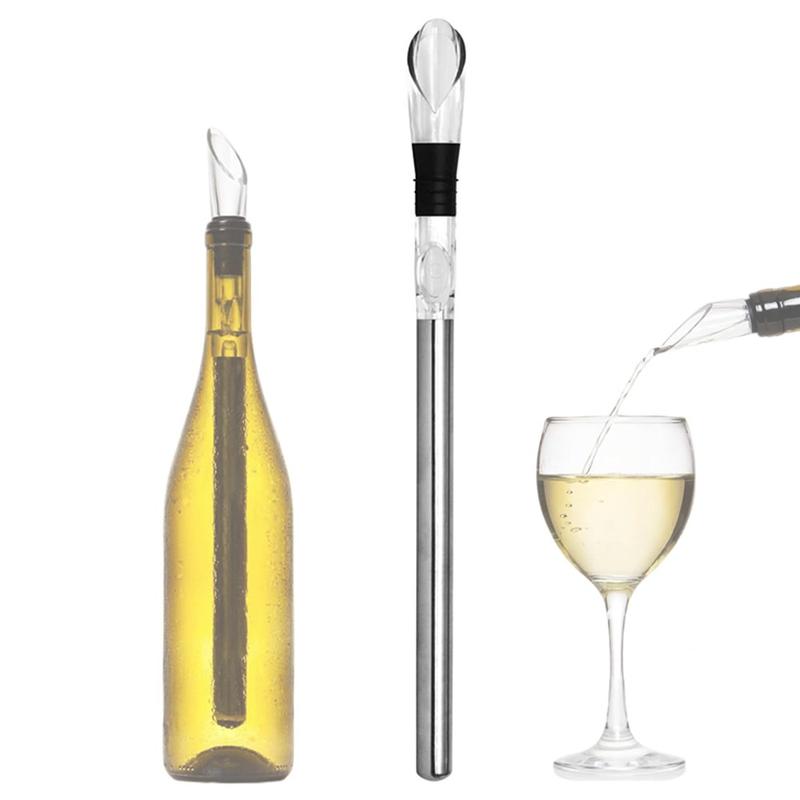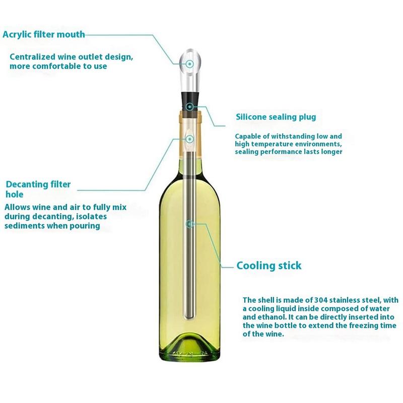 • 3-in-1-Edelstahl-Weinkühlstab - Eisfreier Kühlstab mit Luftsprudler und Ausgießer