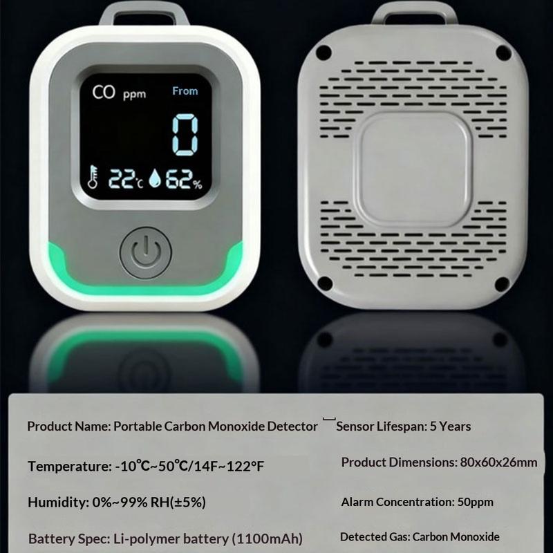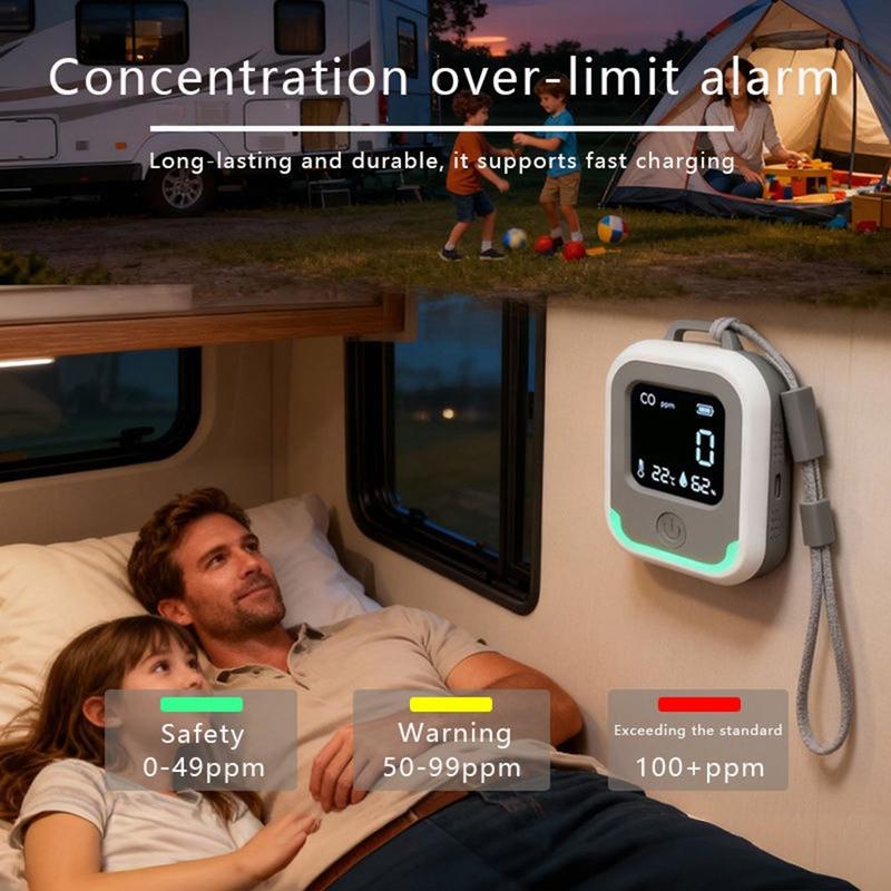 Mit diesem tragbaren 3-in-1-Kohlenmonoxidmelder, der die Überwachung der CO-Konzentration sowie Temperatur- und Feuchtigkeitsmessungen in einem kompakten Gerät vereint, sind Sie zu Hause und unterwegs besser geschützt. Er wurde für den flexiblen Einsatz in Campingausrüstung, Wohnmobilen, Hütten, Werkstätten und alltäglichen Innenräumen entwickelt und hilft Ihnen, gefährliche Kohlenmonoxidwerte frühzeitig zu erkennen und über die Umgebung informiert zu bleiben. Ein integrierter intelligenter Alarm warnt Sie, wenn CO einen gefährlichen Wert erreicht, während das wiederaufladbare USB-C-Design und der 1100-mAh-Li-Polymer-Akku ihn praktisch für Reisen und Notfallausrüstungen machen. Mit einem Messbereich von bis zu 1000 ppm und einer übersichtlichen, tragbaren Form ist er eine einfache Sicherheitsaufrüstung für alle, die sich in geschlossenen oder mit Brennstoffen beheizten Umgebungen aufhalten.