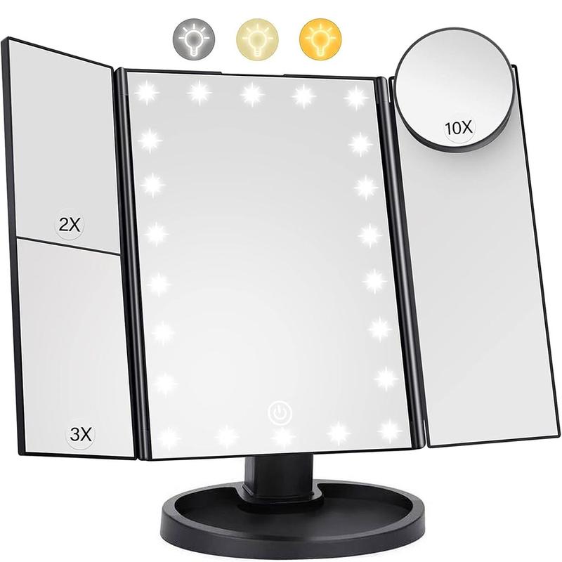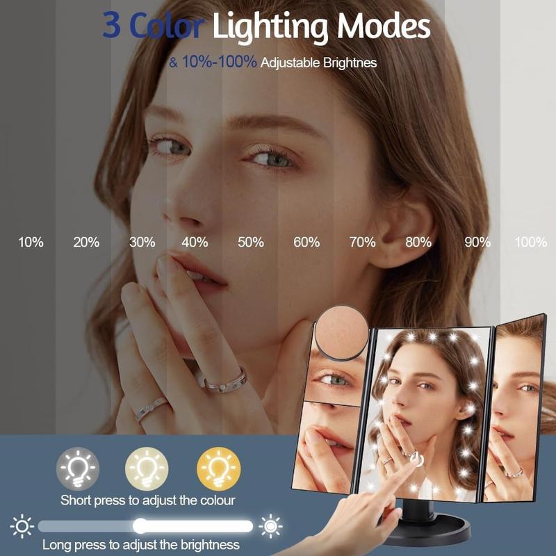 3-seitig klappbarer Makeup-Spiegel mit 22 LED-Leuchten