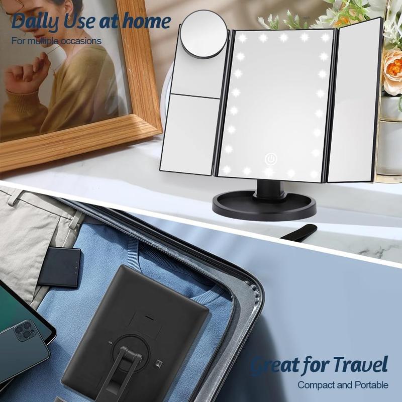 • 3-seitig klappbarer Schminkspiegel mit 22 LED-Leuchten - 1X/2X/3X/10X Vergrößerungsspiegel für den Kosmetikspiegel