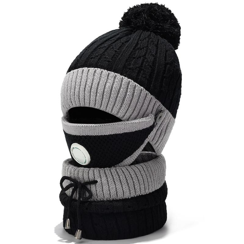 3-teiliges Winterset aus winddichter Strickmütze, Gesichtsmaske und Nackenwärmer - mit Fleece gefüttertes Set zum Schutz vor kaltem Wetter