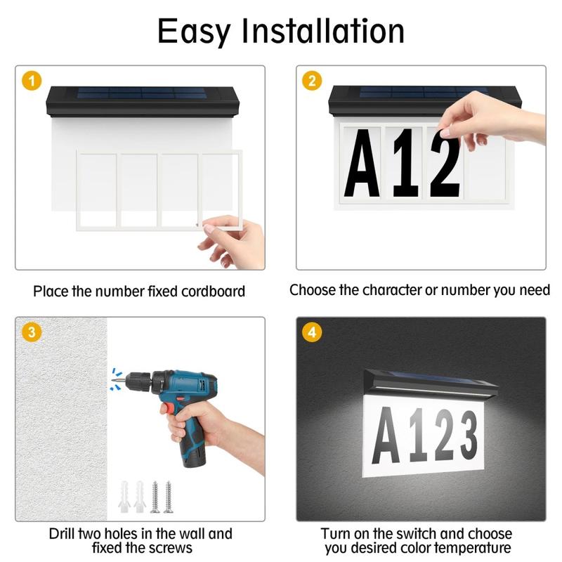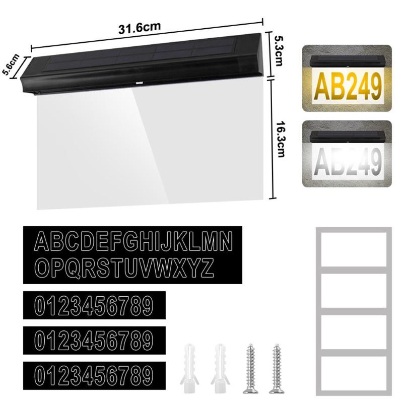 • 30-LED-Solar-Adressschild mit anpassbaren Hausnummern - LED-beleuchtet, wasserdicht und langlebig