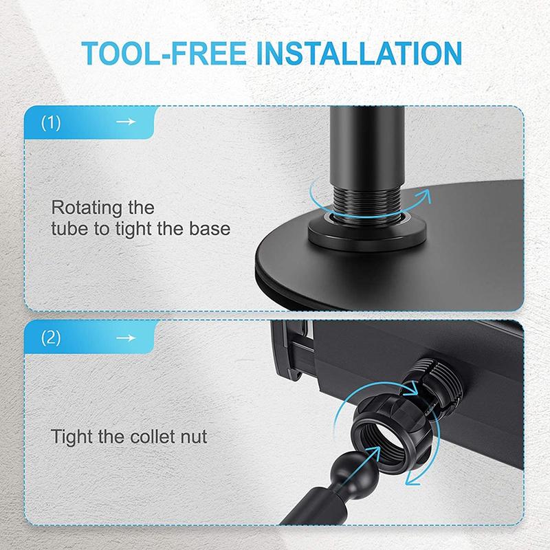 Werkzeugfreie Installation, einfach das Rohr drehen, um die Basis zu befestigen und dann die Spannmutter festziehen