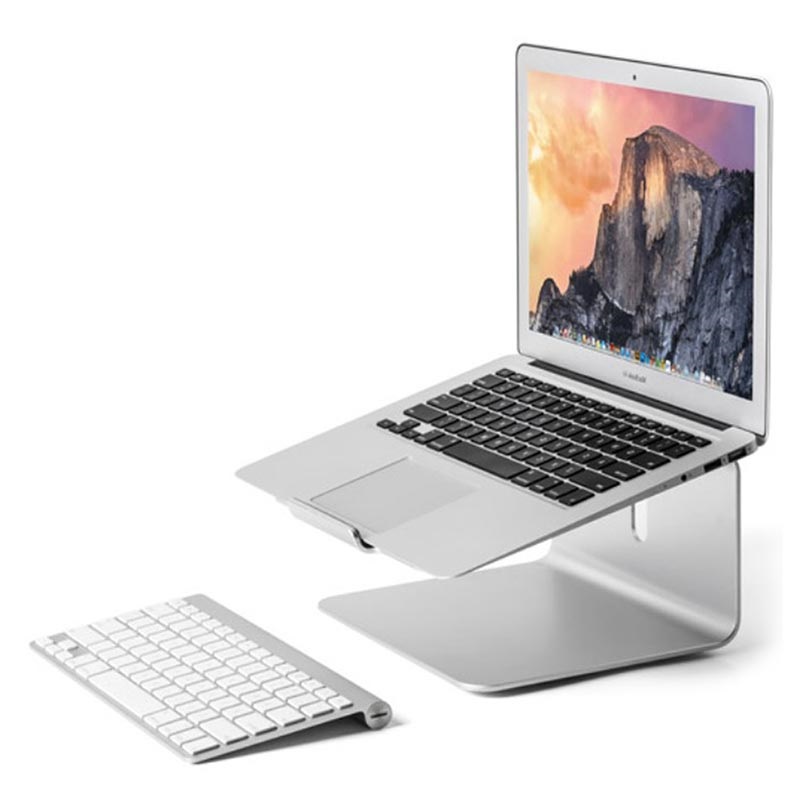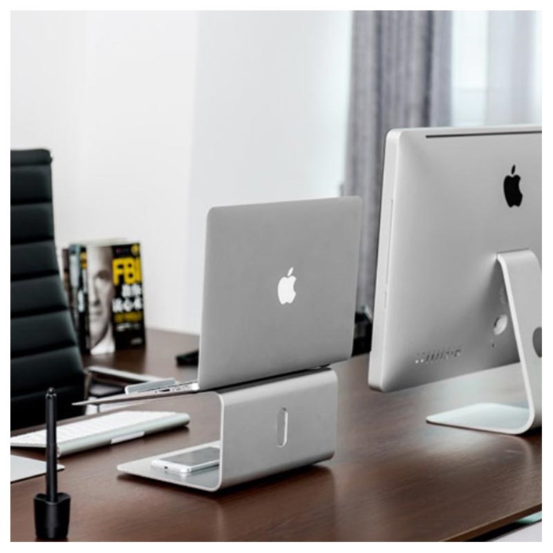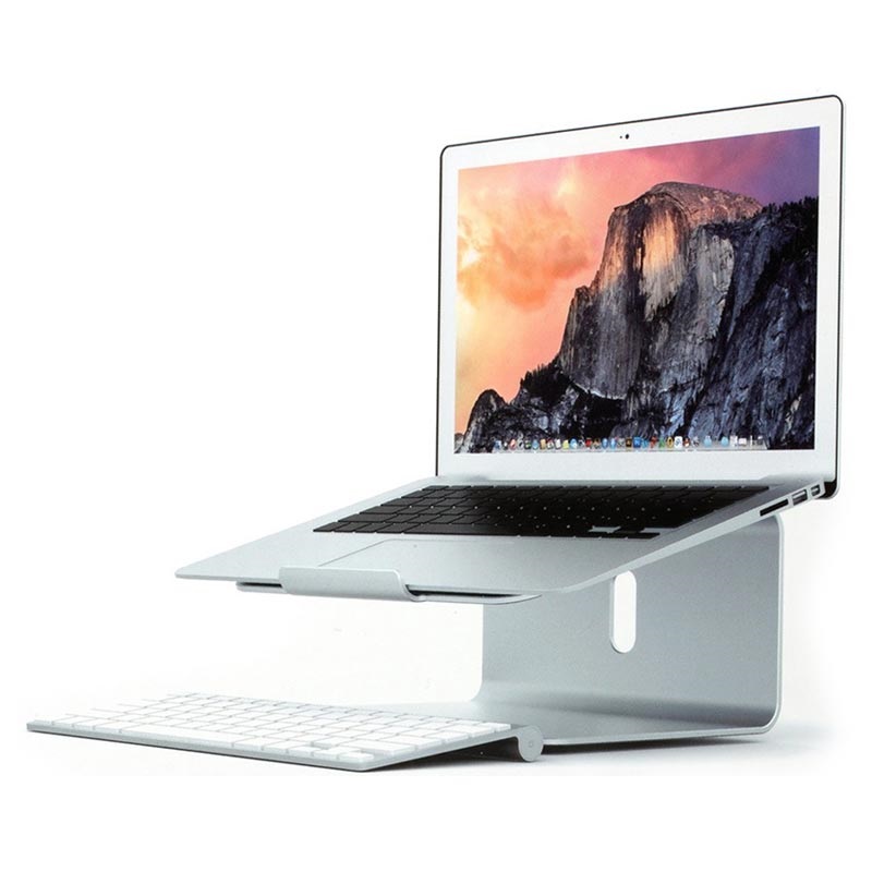 Sein praktisches Design ermöglicht es Ihnen, Ihren Laptop in eine bequemere Position zu bringen, und macht ihn perfekt für jede Art von Büro. Auf der Unterseite befindet sich ein Drehkissen, das Ihren Arbeitstag noch flüssiger macht, während die speziellen Gummipuffer ein versehentliches Verrutschen verhindern.