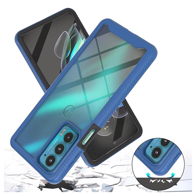 360 Schutz Motorola Edge 20 Hülle - Blau / Durchsichtig