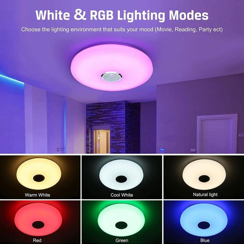 Die Smart Music Ceiling Light vereint Beleuchtung, Musik und intelligente Steuerung in einem eleganten Design. Sie ist ideal für alle, die ihren Raum mit anpassbaren Farbeffekten, hochwertigem Sound und funktionalem Komfort aufwerten wollen - alles mit einem Fingertipp oder einer Fernbedienung steuerbar.