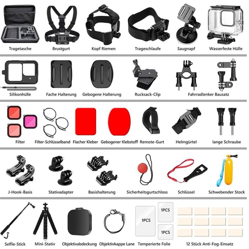 Mit diesem Kit erhalten Sie eine sofort einsatzbereite Ausrüstung für verschiedene Aufnahmeszenarien, ohne Zubehör separat kaufen zu müssen. Sie erhalten praktische Halterungen für Action-Aufnahmen, flexible Werkzeuge für kreative Winkel und Schutzelemente, die dazu beitragen, dass Ihre GoPro mit der Zeit in besserem Zustand bleibt. Ideal für Anfänger und erfahrene Benutzer, die ein vielseitiges Set in einem Paket wünschen.