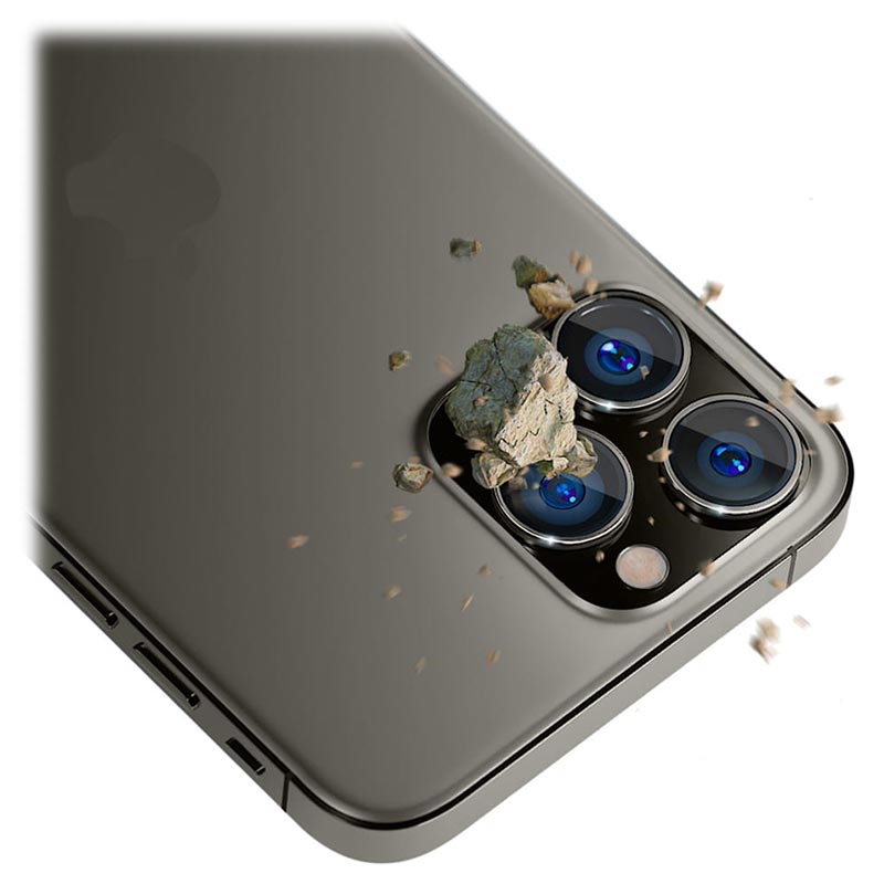 Dieses Kit enthält einen Schutz aus gehärtetem Glas mit einem dekorativen Ring für jeden Kamerasensor, der ihn vor Kratzern und Stößen schützt. Dabei bleibt die Foto- und Videoqualität dank der hohen Lichtdurchlässigkeit unbeeinträchtigt.