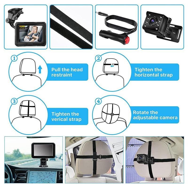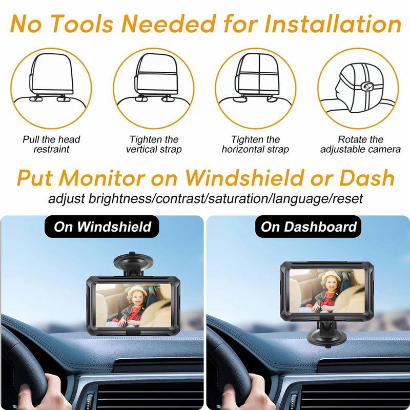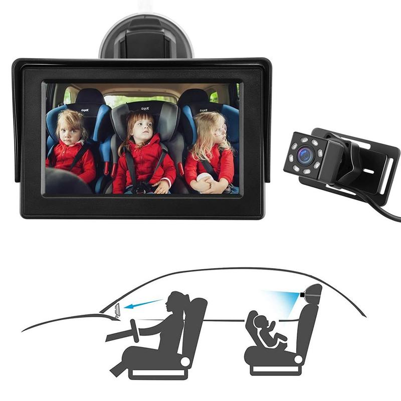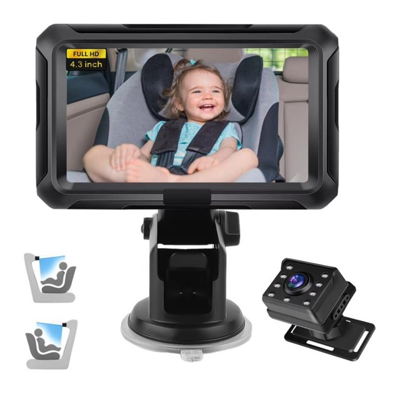 4,3-Zoll-HD-1080P-Auto-Baby-Monitor - Weitwinkel-Nachtsicht-Kamera mit 360 Rotation für Rücksitz-Sicherheit