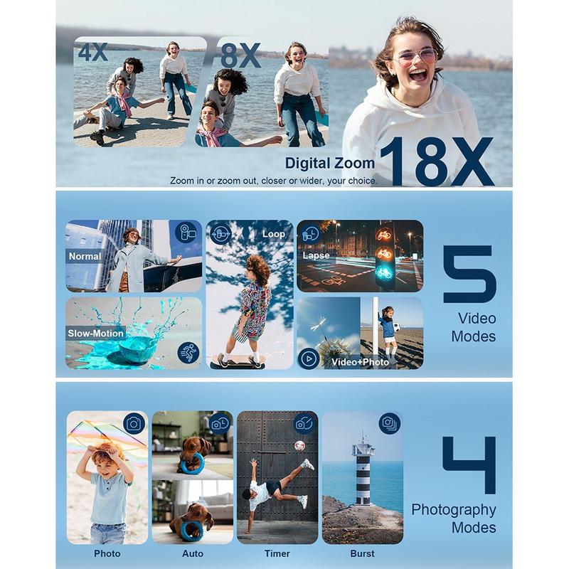 - 4K-Ultra-HD-Videos und 80-MP-Fotos - Nehmen Sie kristallklare 4K-Videos mit 30 FPS auf und machen Sie 80-MP-Fotos mit atemberaubenden Details. Der 18-fache Digitalzoom ermöglicht es Ihnen, näher an das Geschehen heranzukommen, ohne an Qualität einzubüßen.