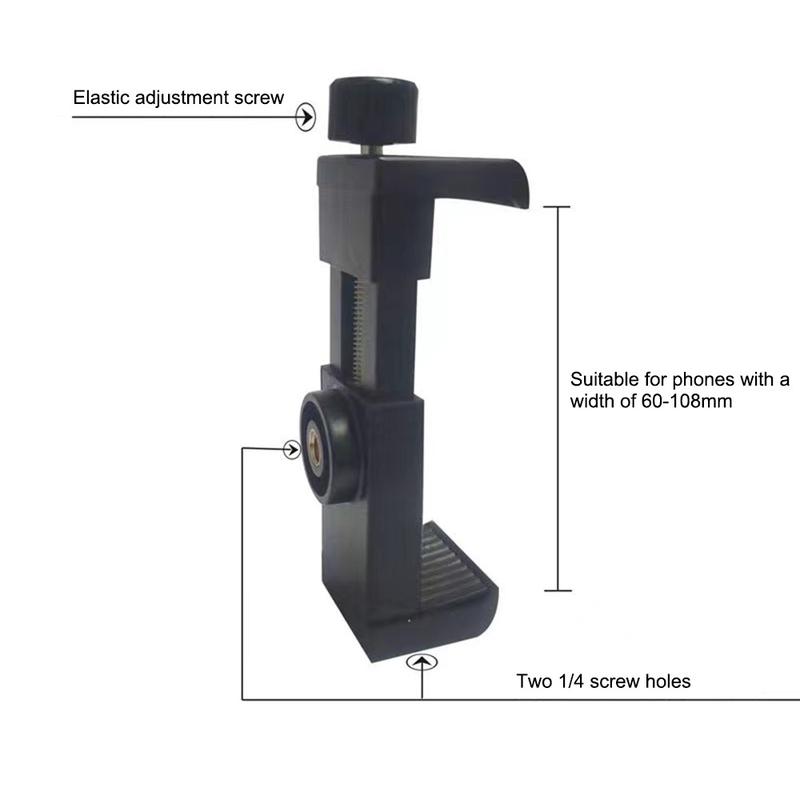 Der Telefonclip verfügt über eine rutschfeste Silikonauflage, um Ihr Telefon stabil zu halten. Er unterstützt Geräte mit einer Breite von 60-100 mm und ermöglicht sowohl horizontale als auch vertikale Aufnahmen für kreativere Inhalte. Dank einer universellen 1/4-Zoll-Schraubschnittstelle an der Unterseite und Rückseite ist er mit vielen Stativen und Halterungen kompatibel.