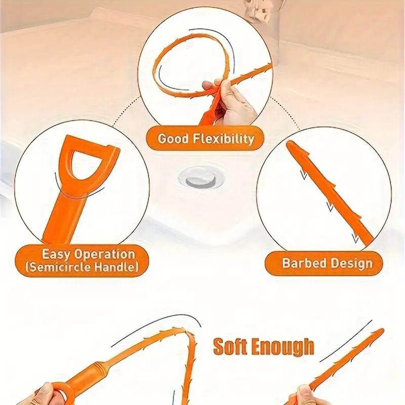 Mit 5 Haken in jedem Set haben Sie immer ein zuverlässiges Werkzeug zur Hand, um langsam ablaufende Waschbecken oder Duschen zu reinigen. Die Kombination aus Langlebigkeit, Flexibilität und tiefreichendem Design macht es zu einer einfachen, effektiven und wiederverwendbaren Lösung für die Abflusspflege zu Hause.