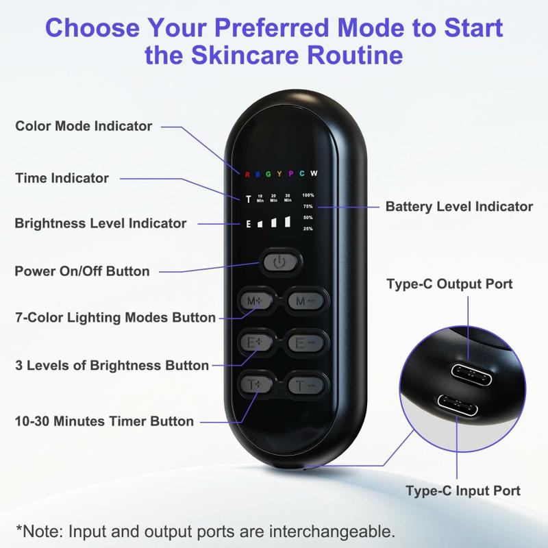 Diese LED-Lichttherapiemaske verwendet 7 gezielte Lichtfarben – Rot, Blau, Grün, Gelb, Violett, Cyan und Weiß –, um verschiedene Hautprobleme wie Mattheit, ungleichmäßigen Teint, Hautunreinheiten und Zeichen der Hautalterung zu behandeln. Jede Wellenlänge wurde entwickelt, um durch eine sanfte, nicht-invasive Behandlung ein gesünderes Hautbild zu erzielen.