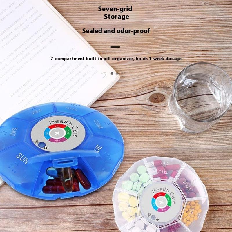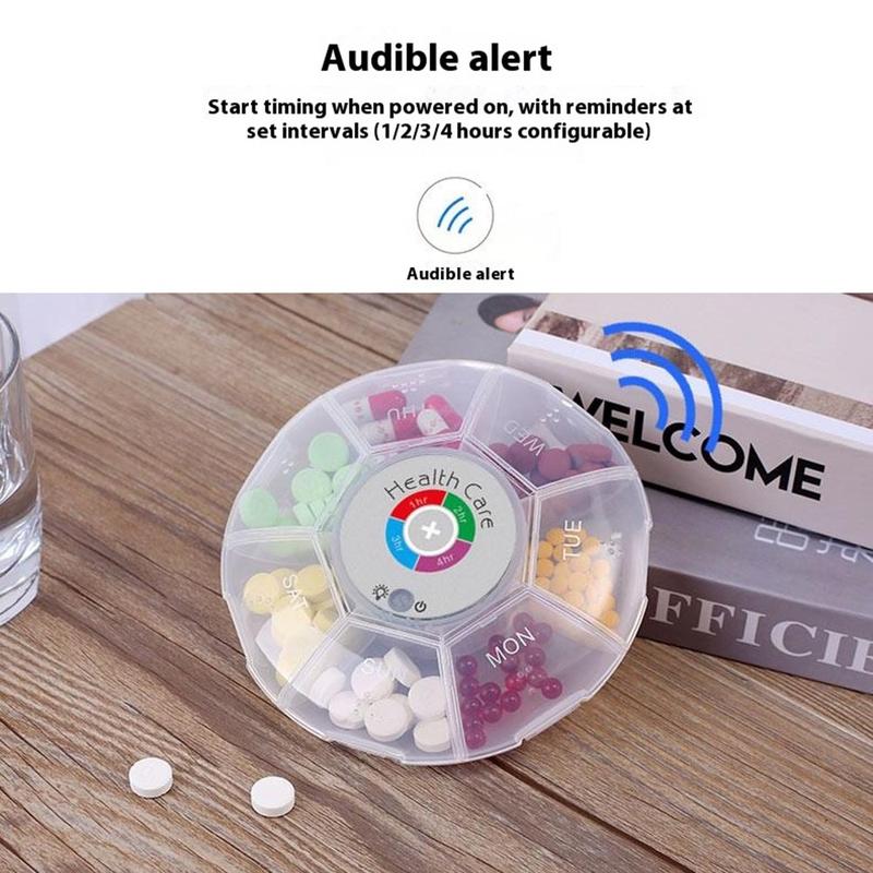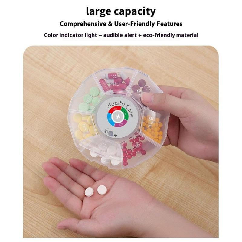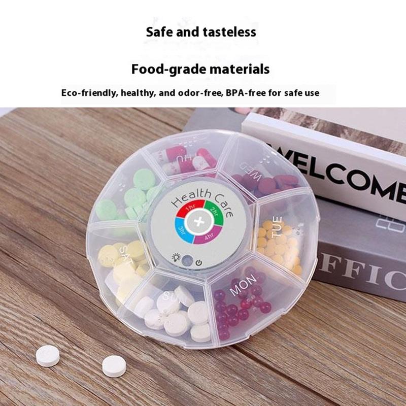 7-TageIntelligenter Pillen-Organizer - 5-Alarm LED-Erinnerung, Braille-Markierungen & wasserdichter Schnappverschluss