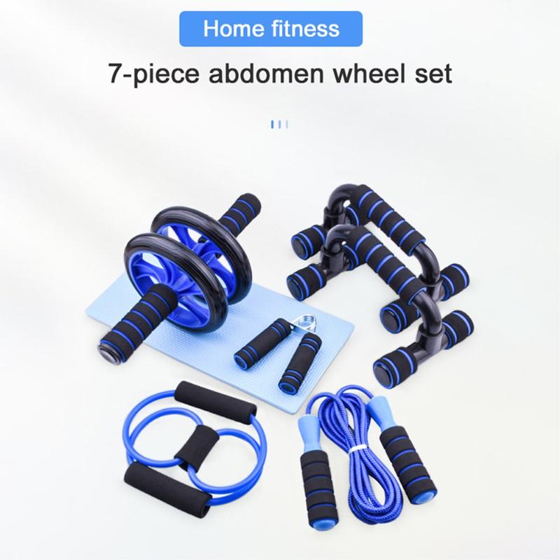 • 7-teiliges Heimfitness-Set - Bauchmuskelroller, Liegestützgriffe, Springseil, Handkraftmesser und Brustmuskeltrainer