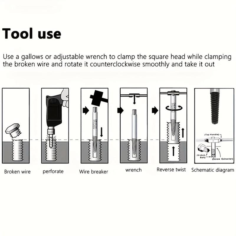8 Stk. Schrauben- und Bolzenausdreher-Set aus kohlenstoffreichem Stahl - Präzisionsentferner für gebrochene Gewindebefestigungen