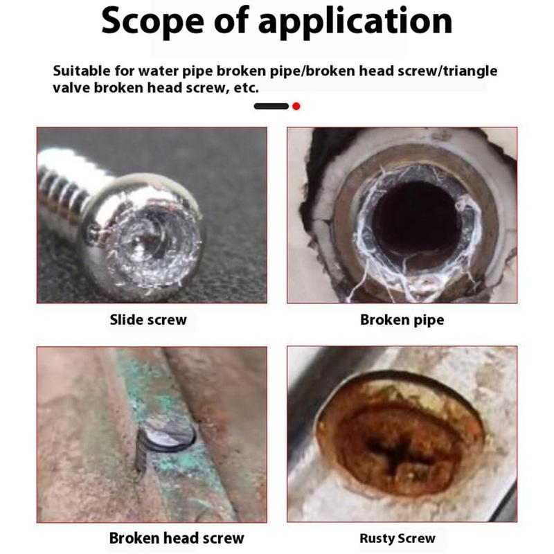 - Vielseitig einsetzbar - entfernt beschädigte Schrauben, Dreiecksventilbolzen, abgebrochene Stehbolzen und verrostete Rohrleitungsnippel