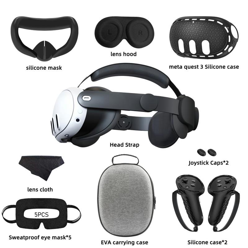 9-teiliges Zubehörset für Meta Quest 3: Kopfband, EVA-Aufbewahrungsetui, Silikon-Griffschalen und mehr