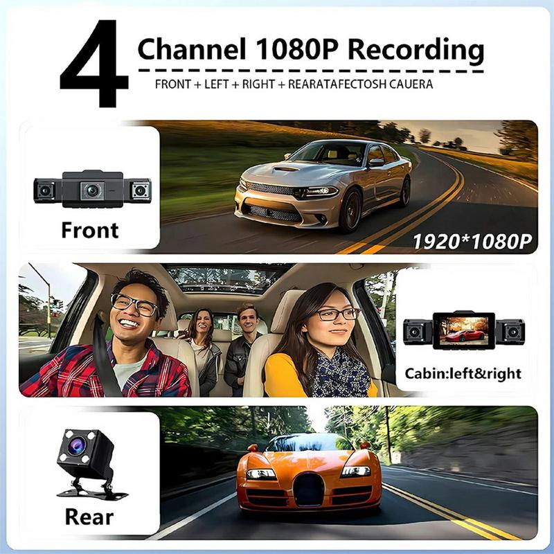 - 4-Kanal-Dashcam mit Kameras vorne, links, rechts und optional hinten