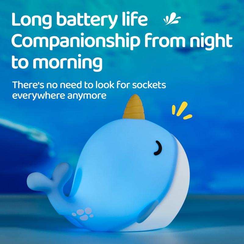 A044 Narwal-Silikon-Nachtlicht - Tippsteuerung, USB-C wiederaufladbar & sanftes Umgebungslicht
