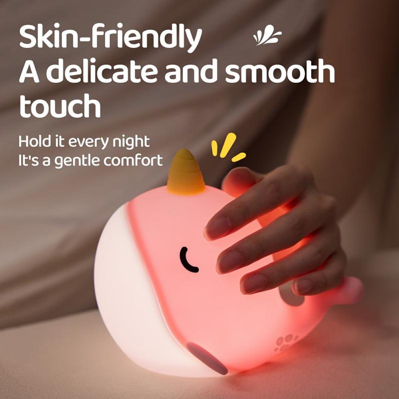 A044 Narwal-Silikon-Nachtlicht - Tippsteuerung, USB-C wiederaufladbar & sanftes Umgebungslicht