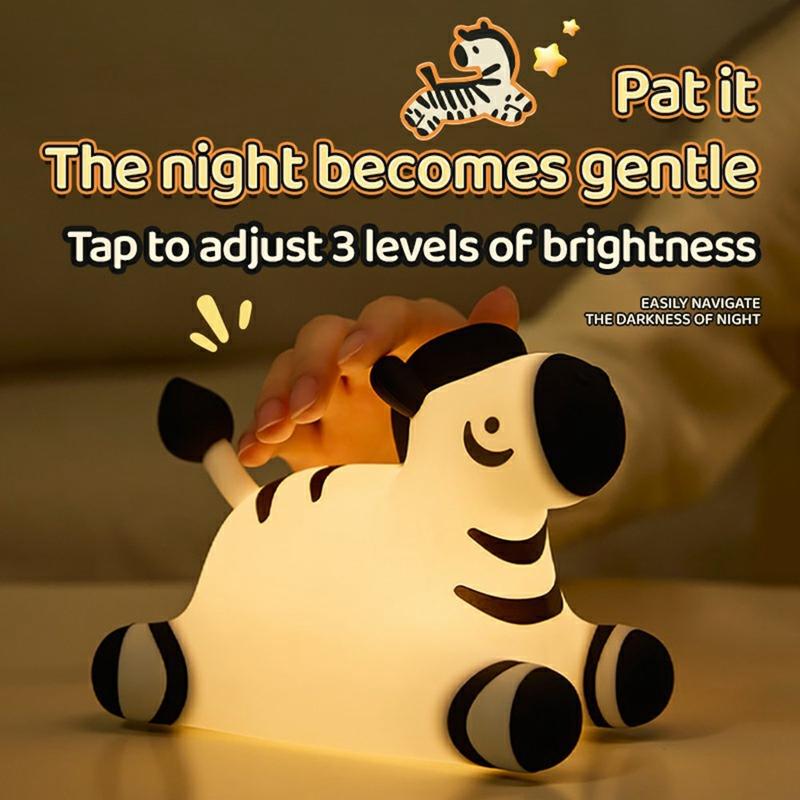 A067 Zebra-Silikon-Nachtlicht - Tippsteuerung, wiederaufladbar & sanftes Umgebungslicht