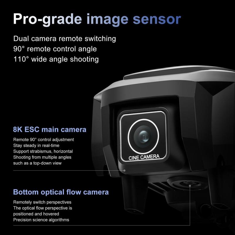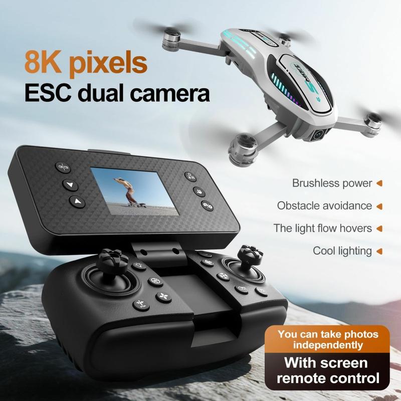 • A118 Bürstenlose Drohne - Faltbarer RC Quadcopter mit optischer Strömung, Hindernisvermeidung, um 90 Grad verstellbarer Kamera und abnehmbarem Bildschirm Controller - 3 Akkus und 8GB Karte