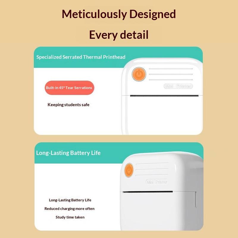 Drucken Sie mit dem Thermodrucker A35 mini jederzeit Etiketten, Notizen und kleine Fotos. Dieser kompakte, tintenfreie Drucker ist auf den täglichen Komfort ausgelegt und damit eine praktische Wahl für Schüler und Studenten, die Organisation zu Hause, Tagebücher, Reisen und schnelles Drucken unterwegs.