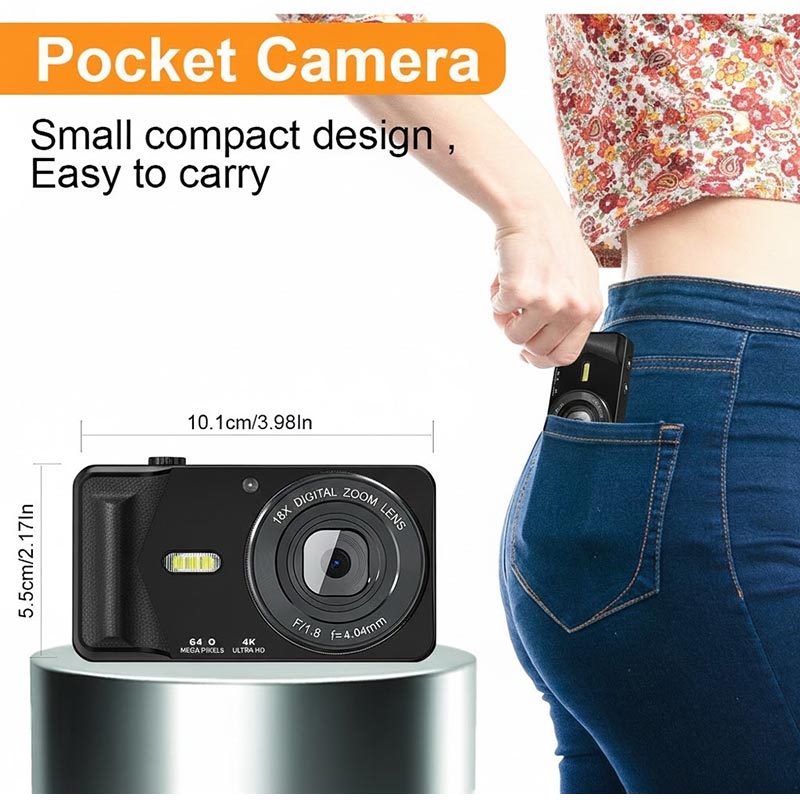 • A59 Kompakte Digitalkamera mit 2.8″ IPS-Bildschirm - 64MP Fotos, 18× Zoom, 2K Video (4K interpoliert)