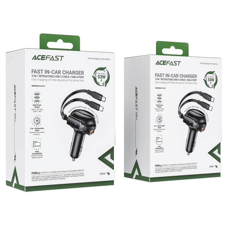 ACEFAST B13 53W USB Auto-Ladegerät-Adapter mit 2 einziehbaren Typ-C-Ladekabel