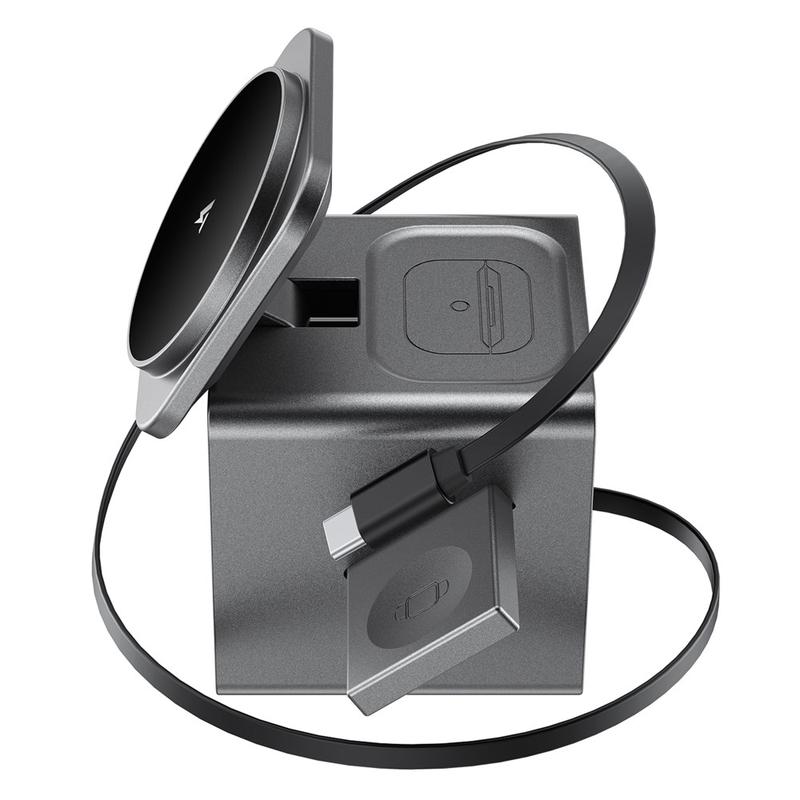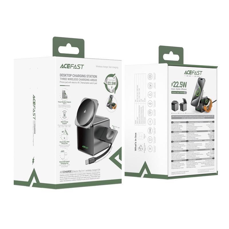 Acefast E34 3-in-1 Magnetische kabellose Ladestation mit elektrischem Flip für Smartphone, Smartwatch & Kopfhörer - 15W, 5W, 2.5W