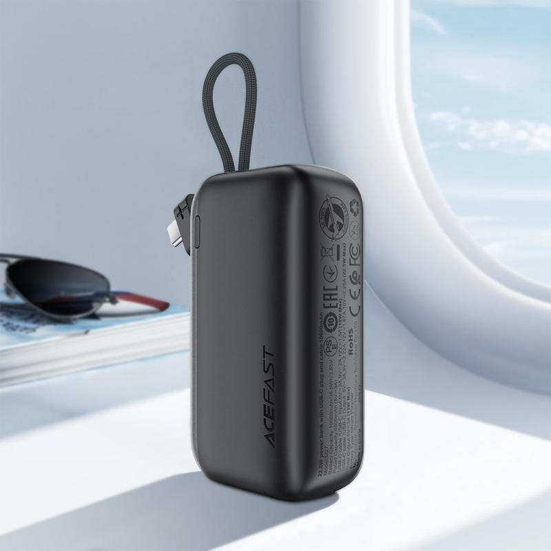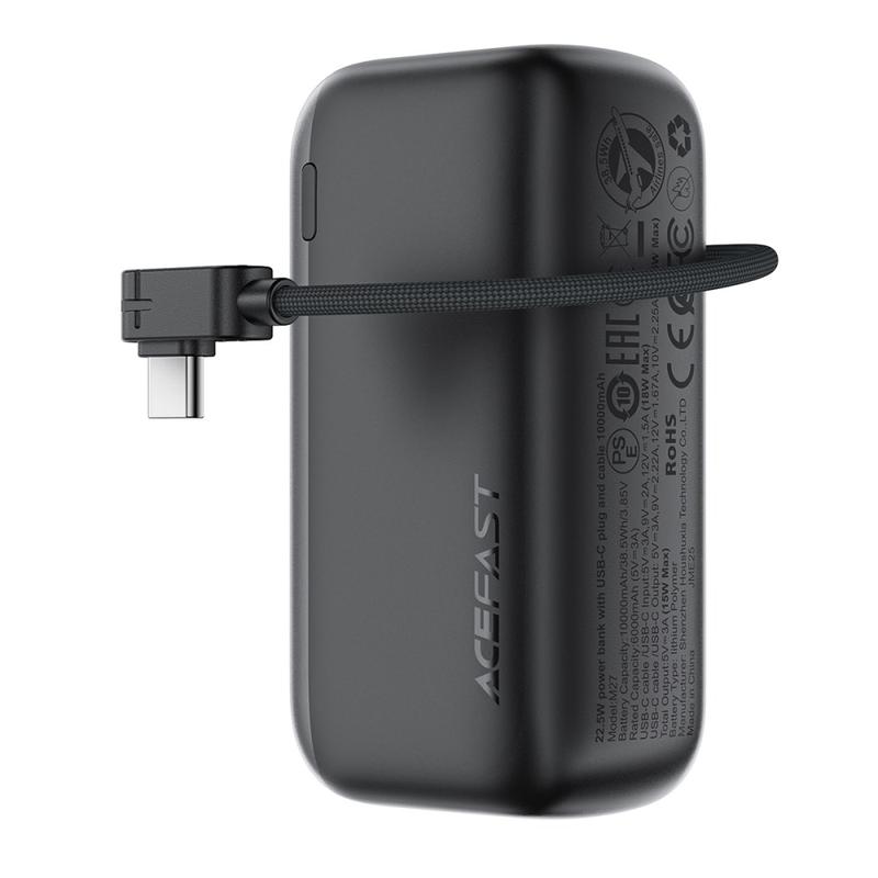 Acefast M27-10000 Mini Power Bank 10000mAh mit USB-C Kabel - 22.5W - Schwarz