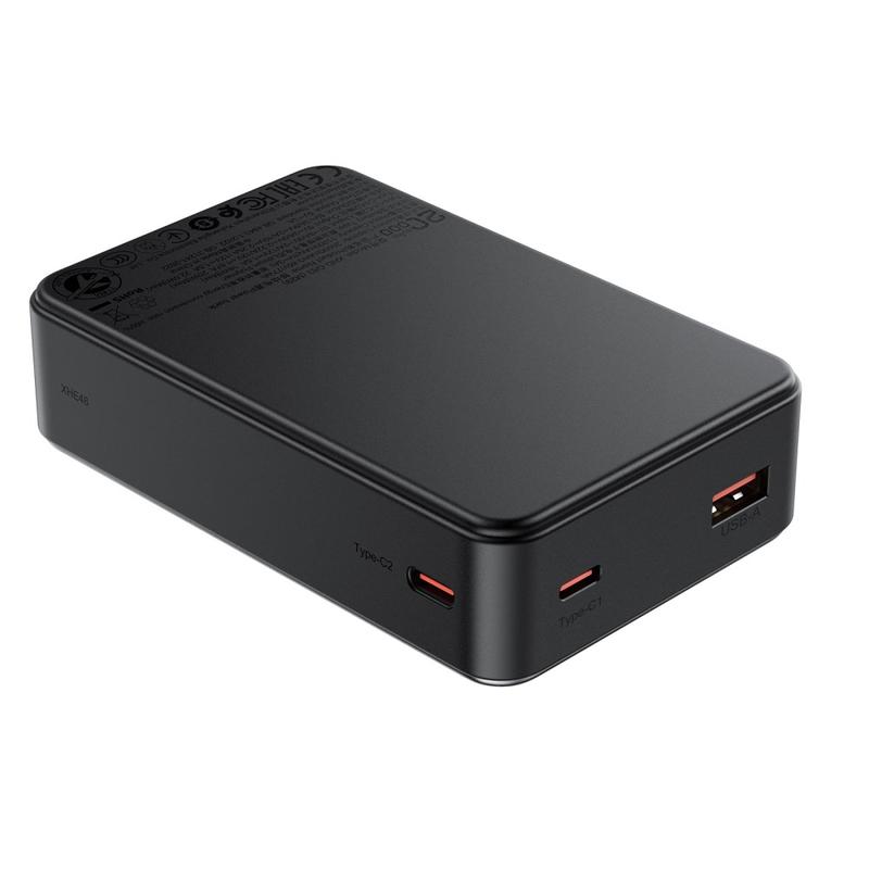 - Zwei USB-C-Ausgänge (je 20 W) und ein USB-A-Ausgang (22.5W) für das Laden mehrerer Geräte