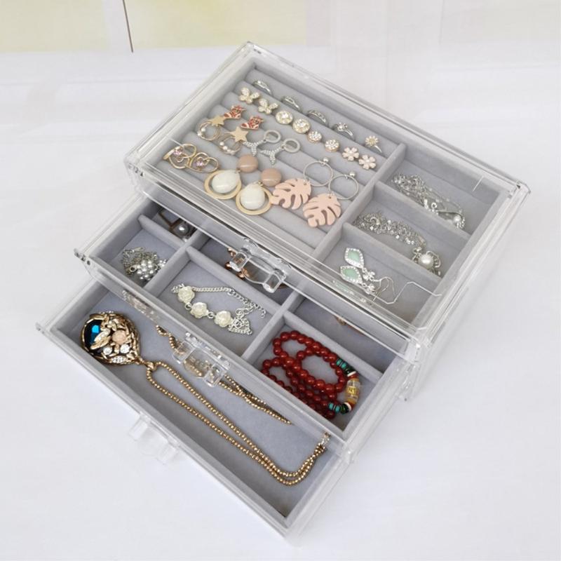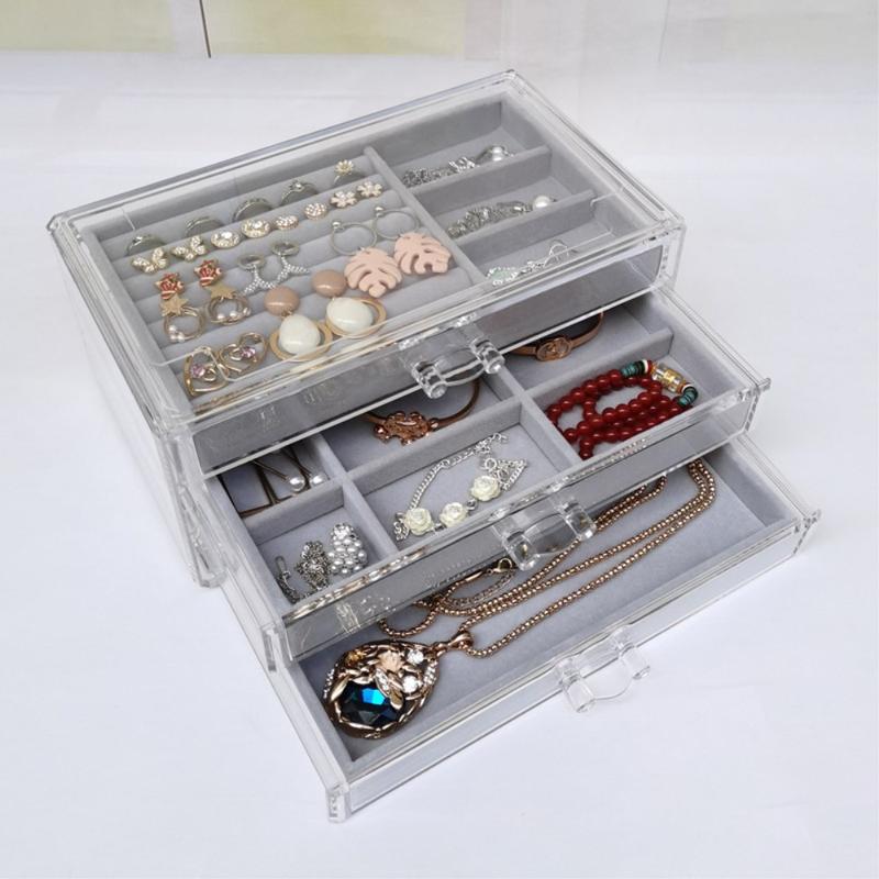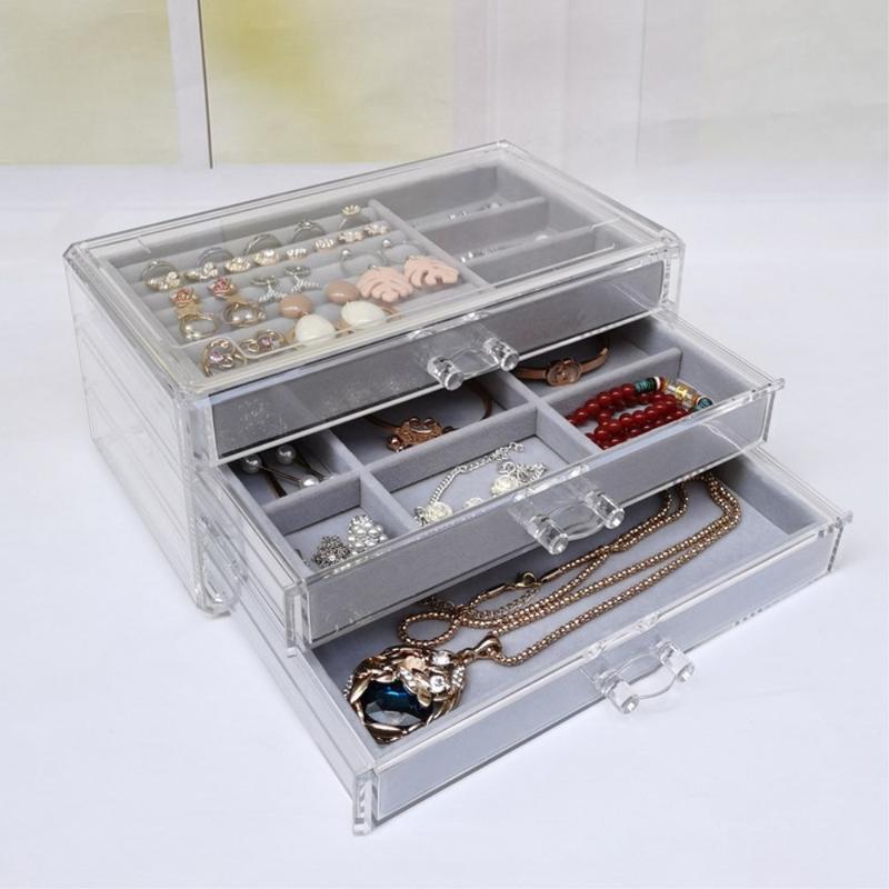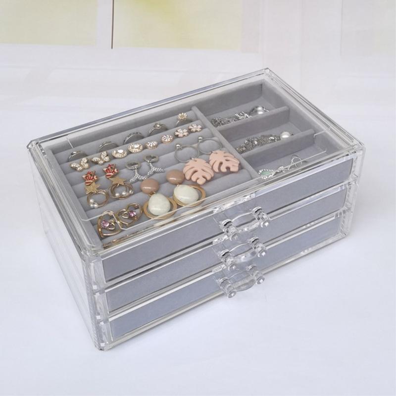 Acryl-Schmuckkästchen mit 3 Schubladen - Grau