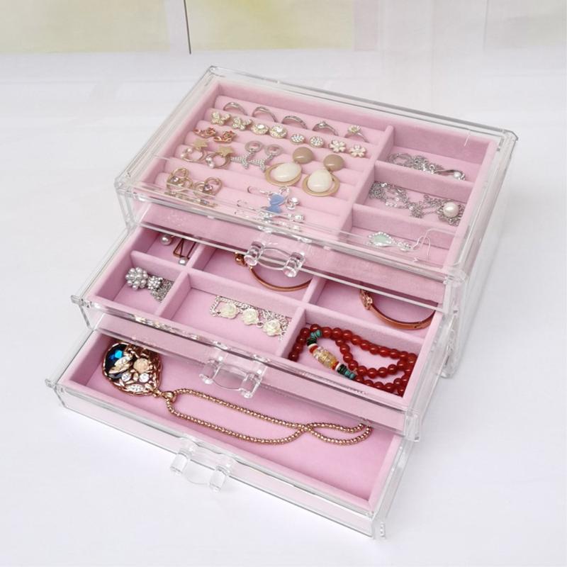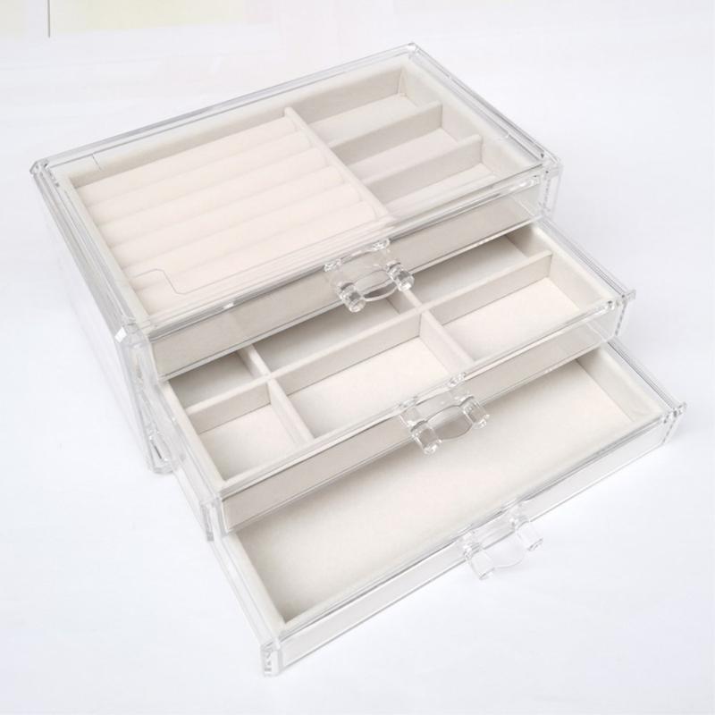 3-Layer Jewellery Organizer Box mit herausnehmbaren Fächern - samtgefütterte Acryl-Schmuckaufbewahrung für Halsketten, Ringe, Ohrringe & Makeup